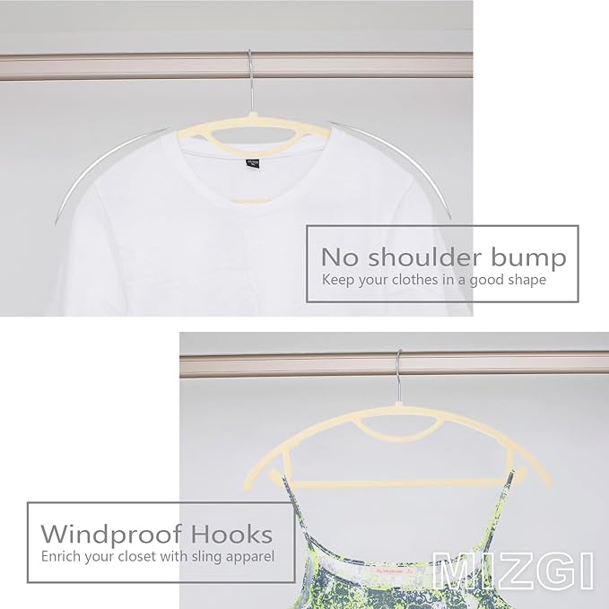 - MAXIMIZE CLOSET SPACE - Designed MIZGI hangers Increases Closet space by as much as 50 percent.The slim and sleek design efficiently works, maximizing space and adding class, helping you organize your wardrobe in the most space efficient manner