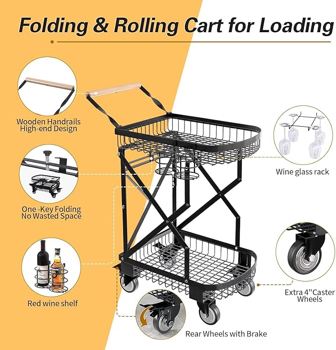 - 👉🛒​Space-Saving Storage Cart & Kitchen Helper​ Instantly folds flat as a compact ​storage cart​ for tight spaces. Dual-tier ​grocery cart​ organizes pantry items or serves as a ​kitchen cart, eliminating clutter.