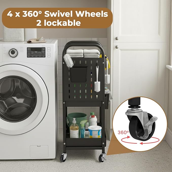 - Multi-Functional: Meet the art cart organizer on wheels, your ultimate companion for endless tasks. Effortlessly transform it into bathroom cart, diaper cart, cleaning cart, book cart, laundry room cart, or a sleek industrial-style snack cart, Its versatile three-tier design adapts to your every need, moving seamlessly from room to room