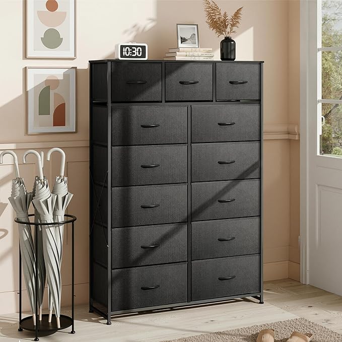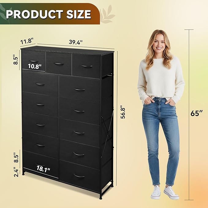 - Multifunction Drawer Tower:This drawer organizer is ideal for wherever you want to keep clutter under control, equipped with 13 detachable fabric drawers and spacious woodtop, which facilitate the orderly storage of daily items, while the desktop provides display space for artworks and small ornaments, and more life style!